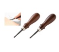 コバ磨き前のコバの成形に使用します。焼き入れと研磨を施した刃先は、一定の巾ですばやく革のへりを削ってコバに丸みを付け、後のコバ磨きを美しく仕上げる事ができます。