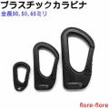 日本製 プラスチックカラビナ マル紐、ヒラ紐 全長30ミリ、50ミリ、65ミリ 樹脂製カラビナ