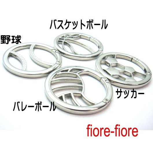 カラビナ スポーツデザイン キーホルダー 外径51mm 線径4mm サッカーキーホルダー、バスケットボールキーホルダー、野球キーホルダー、バレーボールキーホルダー